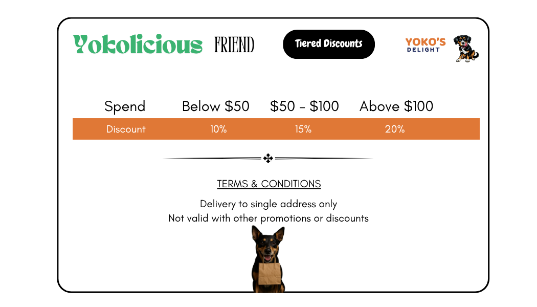 Become part of the Yoko's Delight family with our exclusive Annual Membership Program. As a member, you’ll enjoy special discounts on all your favourite treats—every time you shop. Whether you’re stocking up on strips, cookies, or bundles, your membership brings you tail-wagging savings all year long.